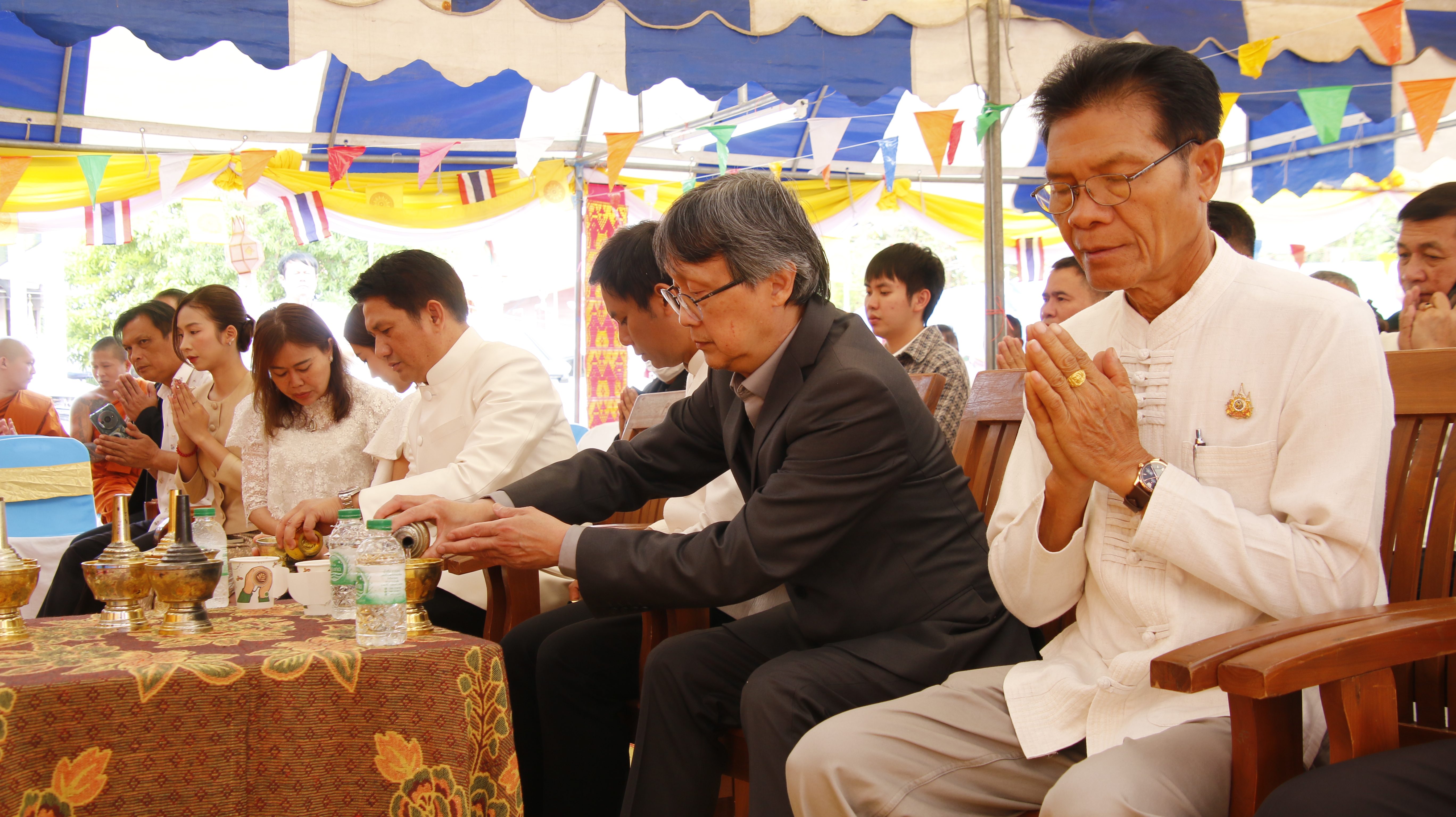 เวลา ๐๗.๐๐ น. เปิดรับบริจาคจตุปัจจัย บูชาวัตถุมงคล เปิดให้สักการะพระสารีริกธาตุ และปิดทองช่อฟ้า